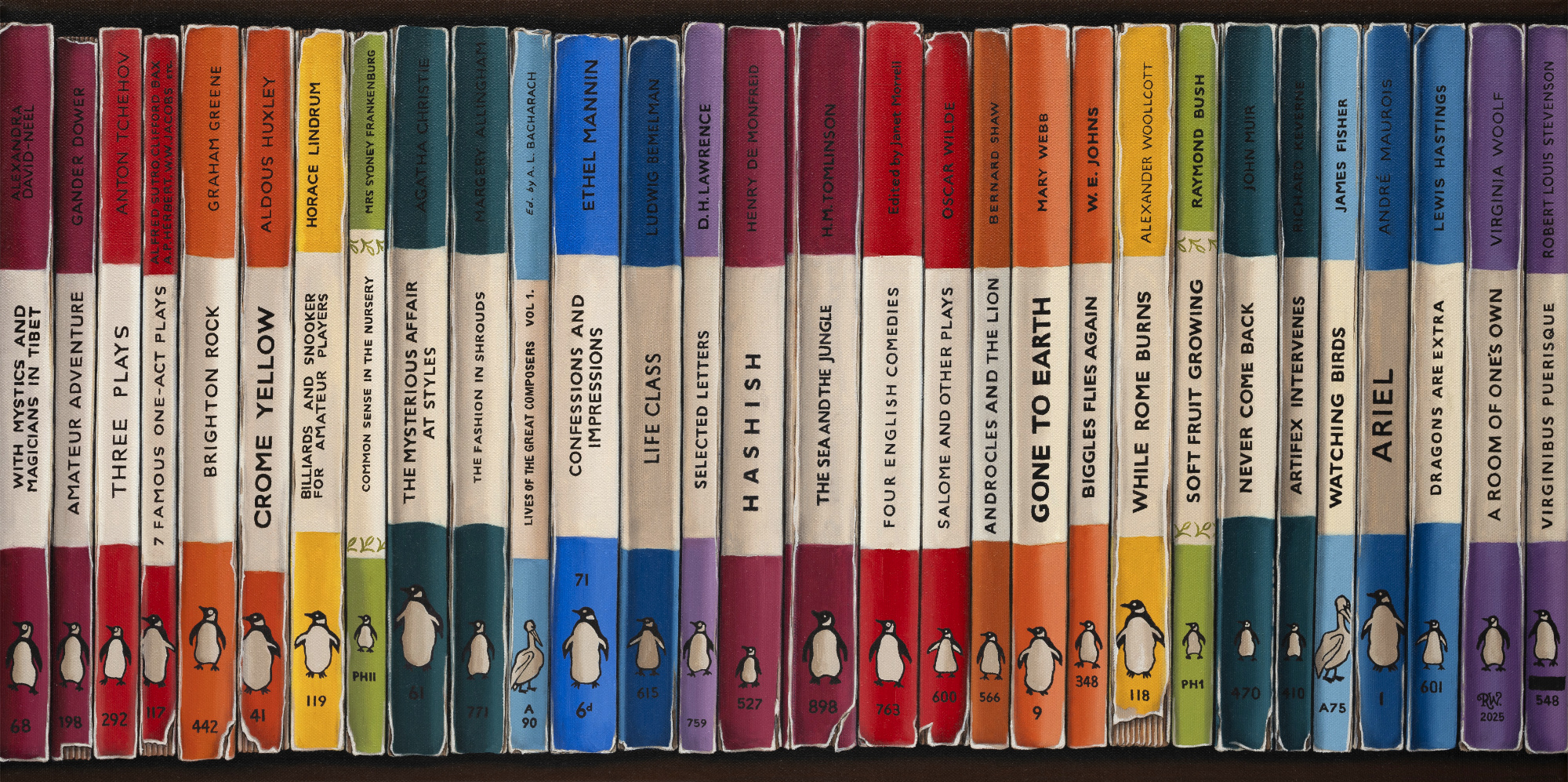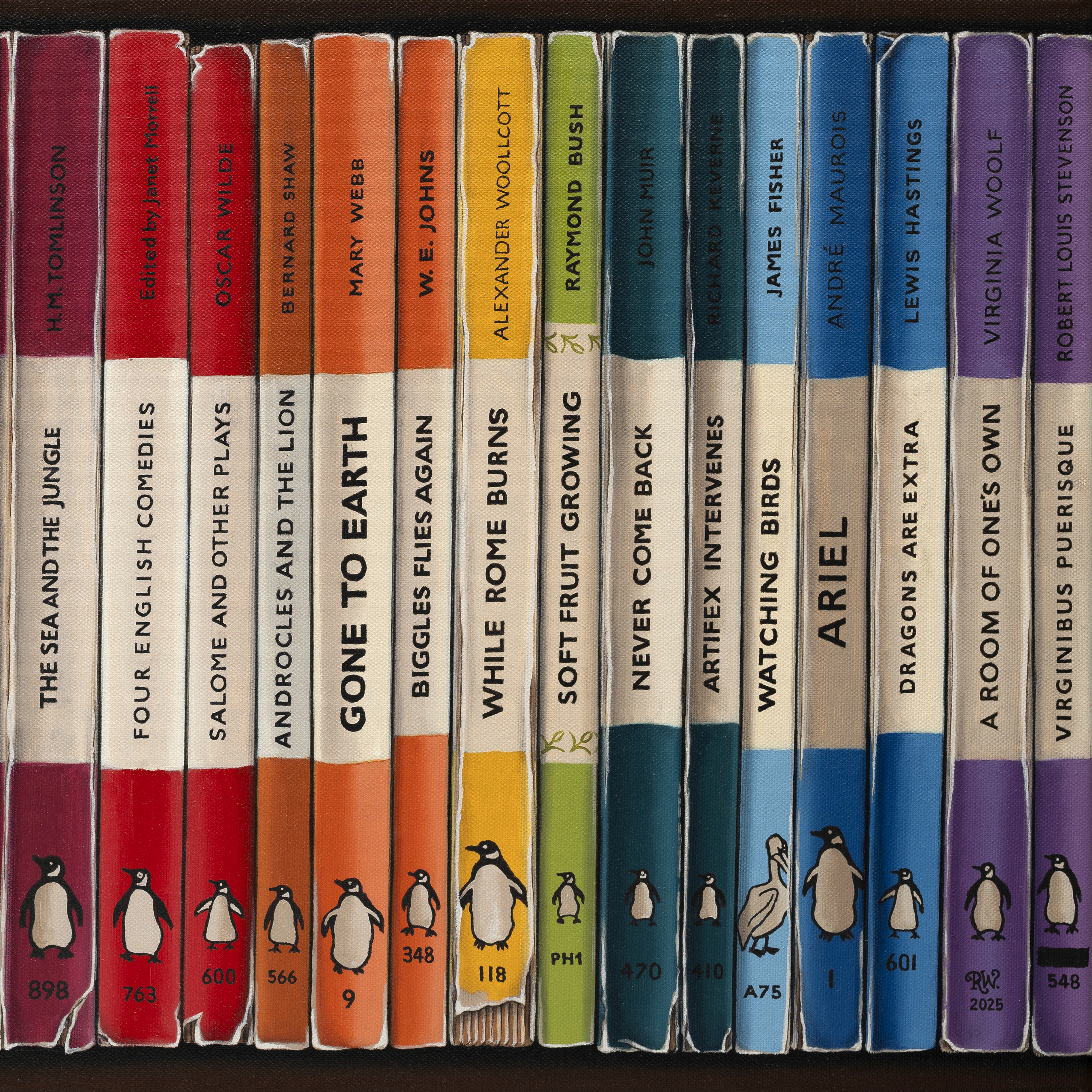 Roo’s unique book-shelf paintings celebrate a love of books – their power, their magic, the joy and the heartbreak they can give us….