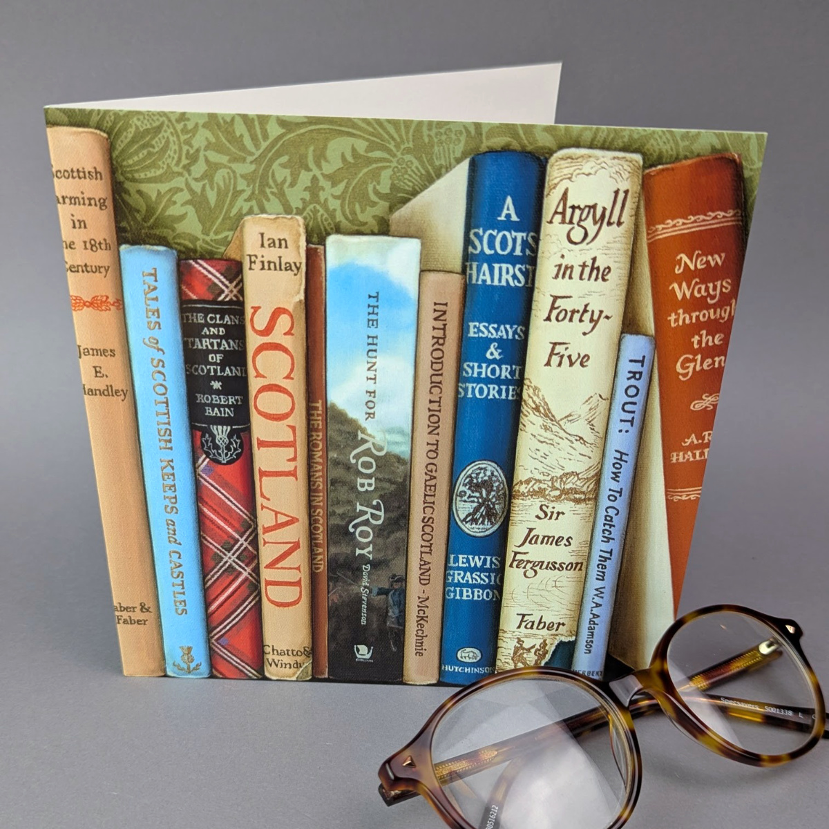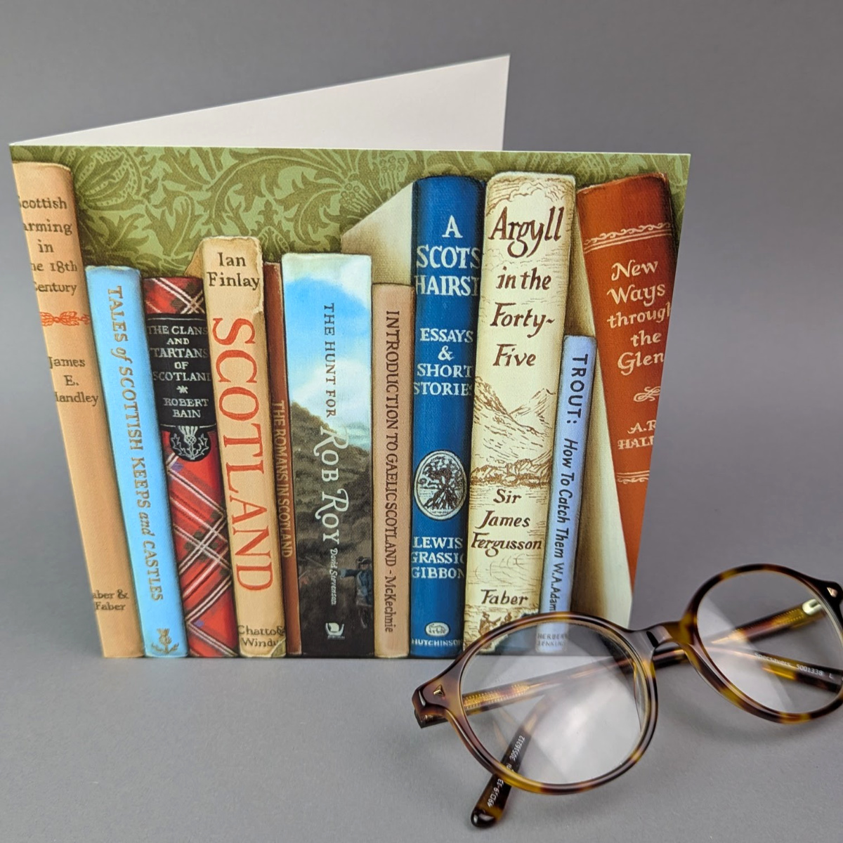 Celebrate all things Scottish with this beautiful Scotland Book Art card.